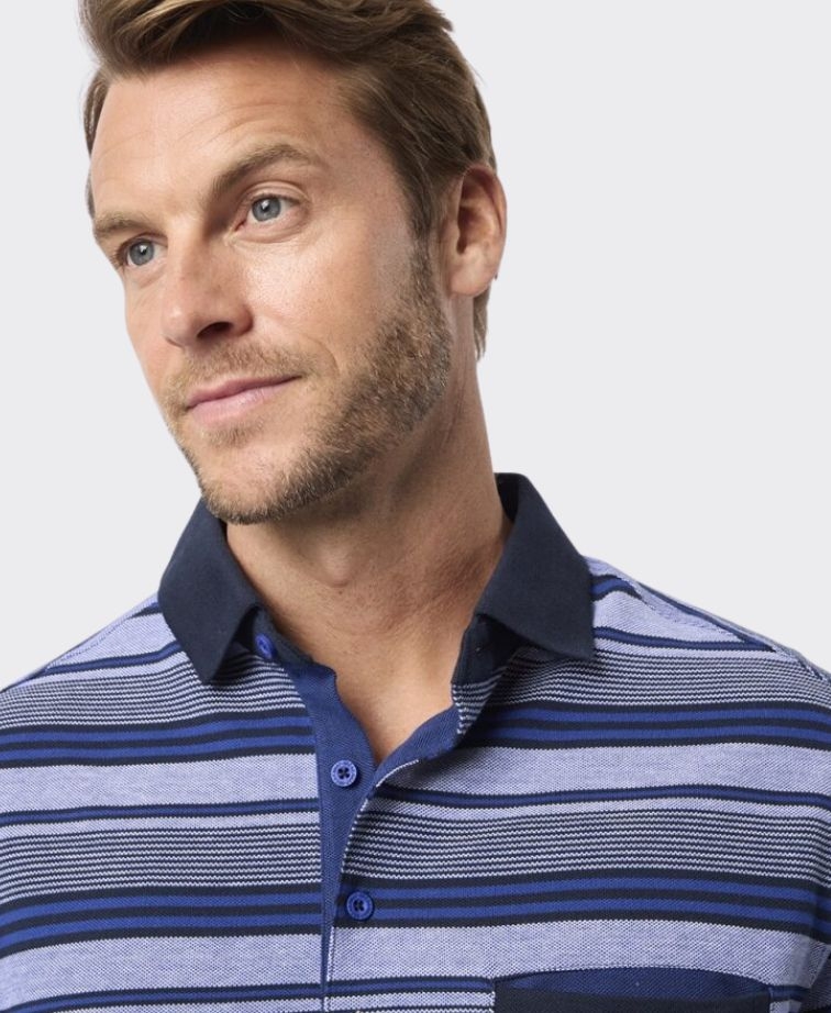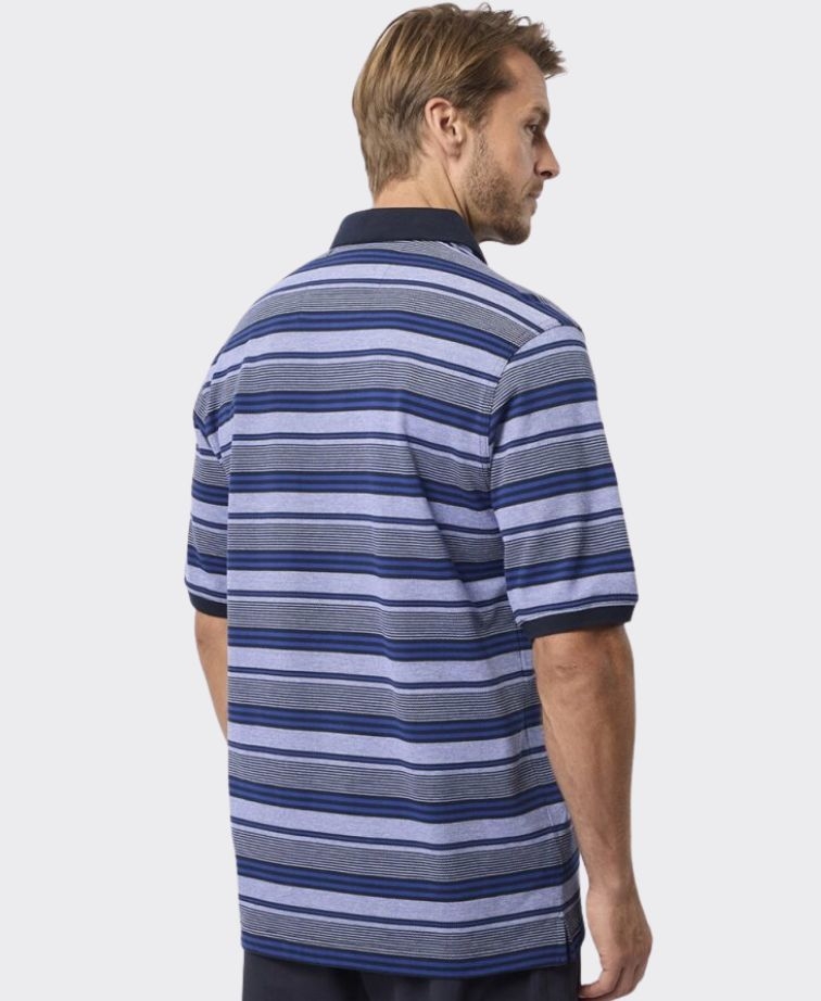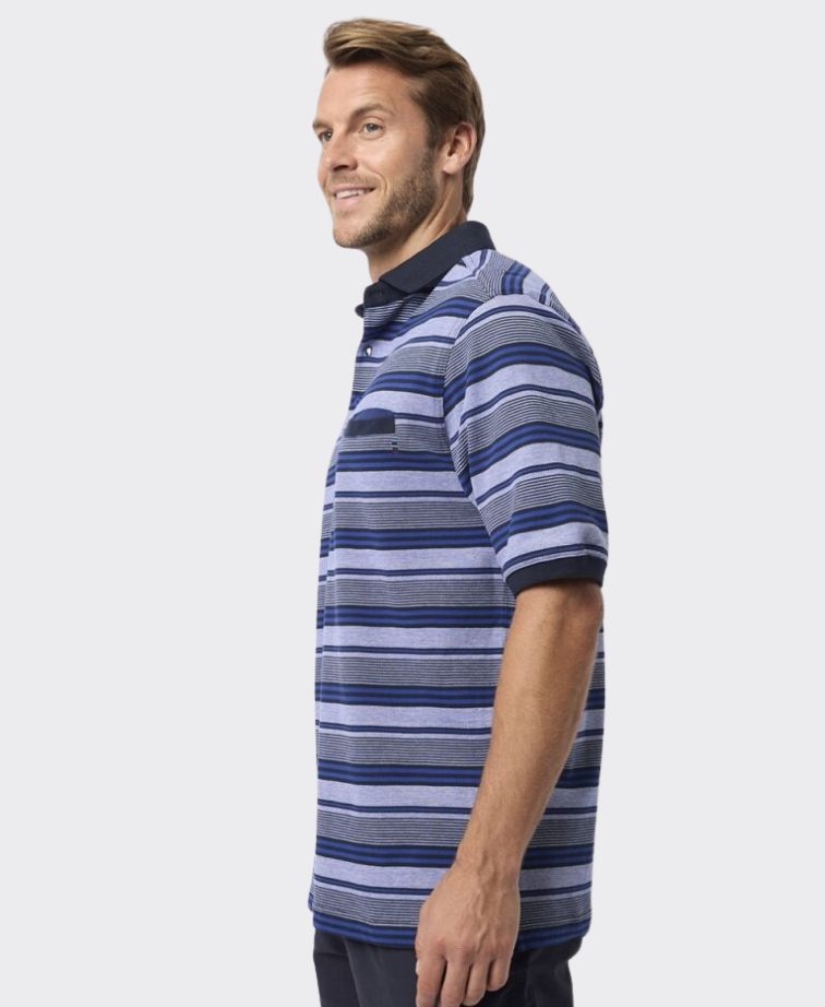 The Haddon Pique Polo is a timeless staple with a modern twist. Made from 100% cotton, this short-sleeve polo offers natural breathability and all-day comfort. Its horizontal stripe design combines varying stripe sizes in contrasting colours, creating a versatile look with extra detail. Finished with a contrast collar, chest pocket, and regular fit, the Haddon Pique Polo is an easy choice for casual weekends, everyday wear, or relaxed catch-ups. A classic polo that never goes out of style.