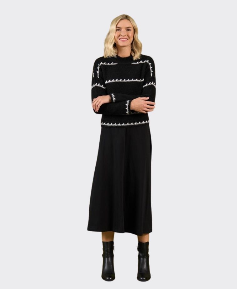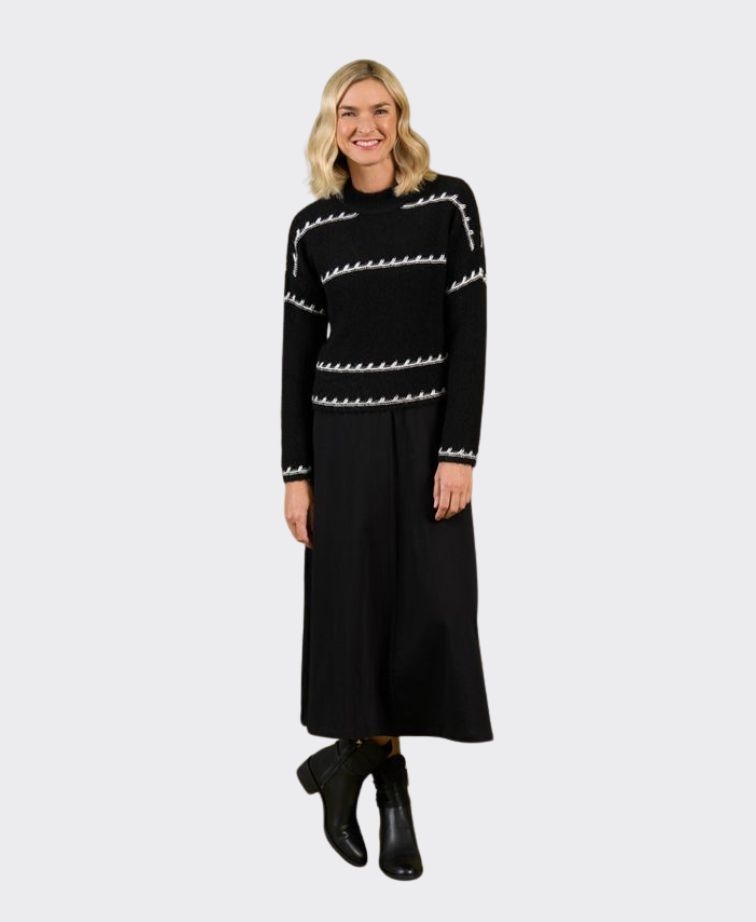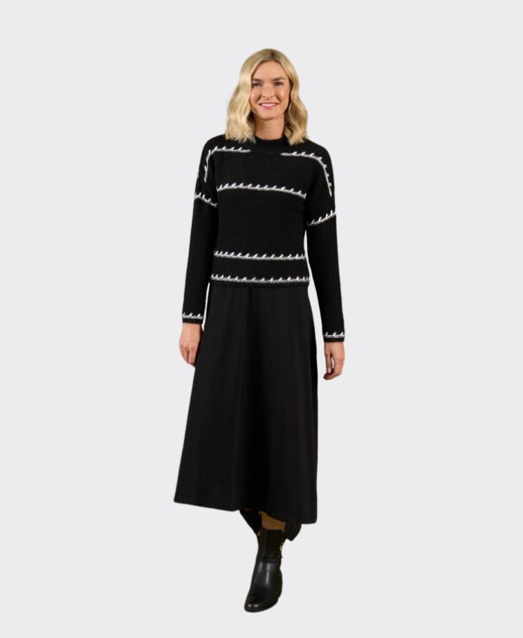 The Mackenzie Sweat Knit blends cosy warmth with modern detailing. Designed in a classic mono stripe pattern, this knit offers a relaxed yet polished look that’s perfect for cooler days.