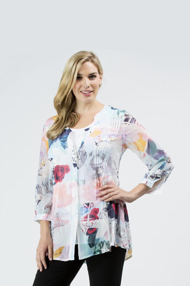 Clarity Blouse Digital Print Pleat Front - Women's Shirts | Yarntons | Free NZ shipping on orders over $150 - Clarity E
