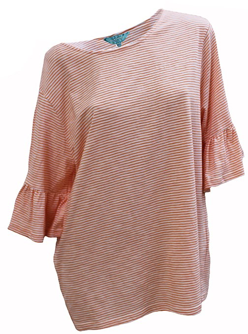 If you are looking for a casual and comfy tee with a bit of charm, this is the one. Fine stripes, relaxed fit and fun sleeves, this tee have all the features to be the dress and go for the hot summery days.