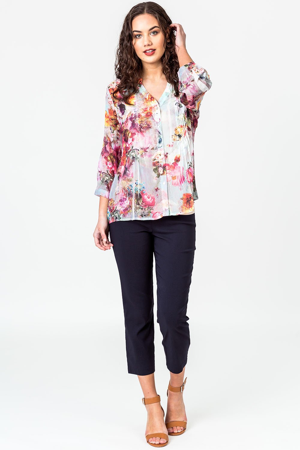 Democracy Blouse Pin Tuck Digi Print - Women's Tops | Yarntons | Free NZ shipping on orders over $150 - Democracy E