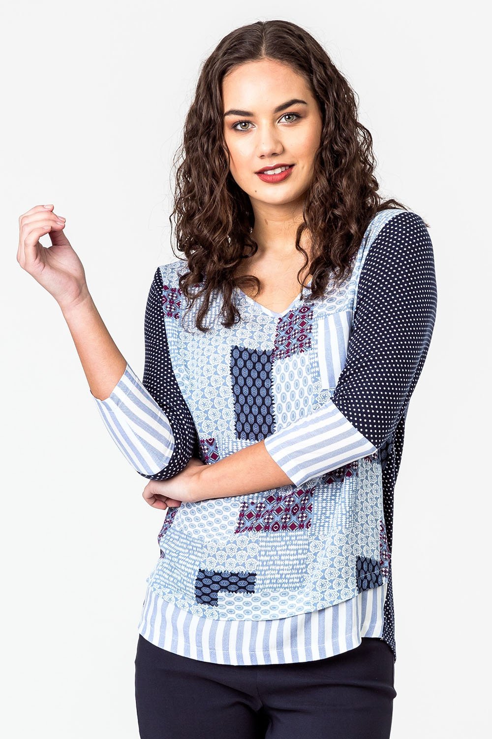 Democracy Top Multi Fabric - Brands-Ladies : Yarntons | New Zealand’s Trusted Fashion Retailer Online - Democracy E