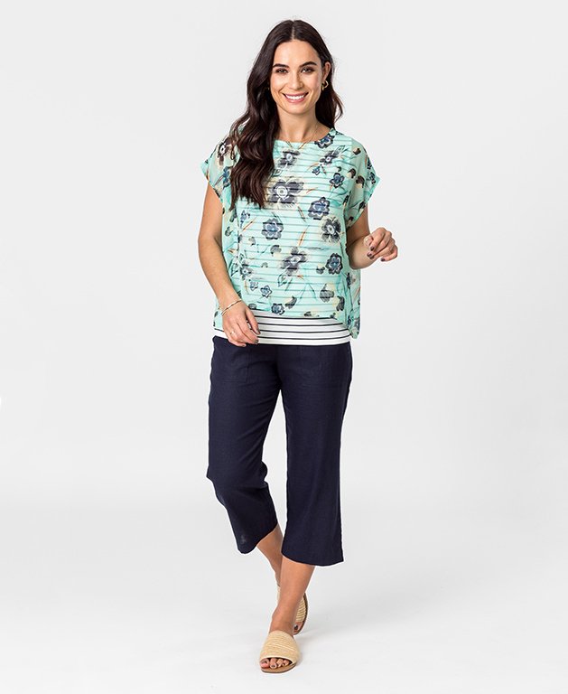 Democracy Top Print Chiffon/Stripe Cap Sleeve Top - Women's Tops | Yarntons | Free NZ shipping on orders over $150 - Democracy SS19