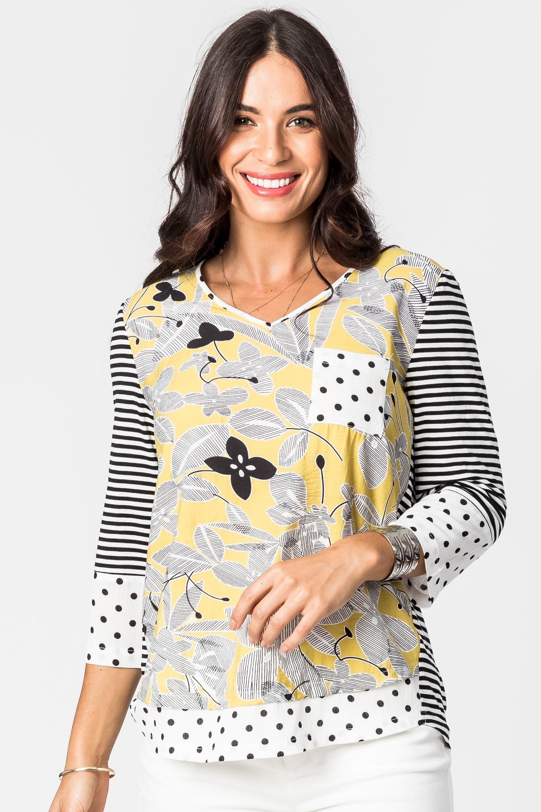 Democracy Top V-Neck Multi 3/4 Sleeve - Brands-Ladies : Yarntons | New Zealand’s Trusted Fashion Retailer Online - Democracy SS20