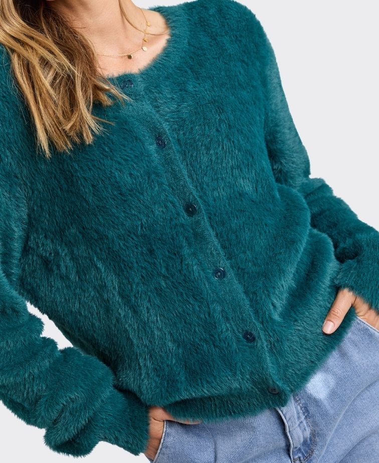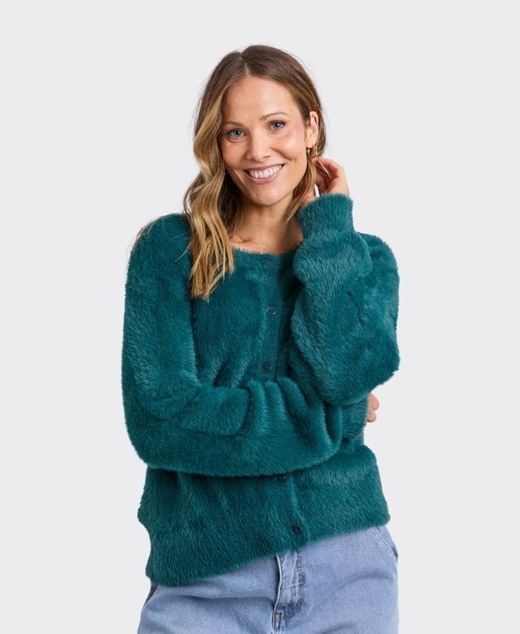 The Elm Paris Cardigan is the ultimate cosy layer for everyday wear. Crafted in a soft, fluffy knit, this button-up cardigan offers warmth, comfort, and effortless style. Perfect for layering over tees or dresses, it adds a chic, snug finish to any outfit.