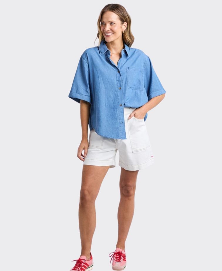 Elm Shirt S/S Blissful Chambray - Brands-Ladies : Yarntons | New Zealand’s Trusted Fashion Retailer Online - Elm SS25 SS25 Ladies Sale 50