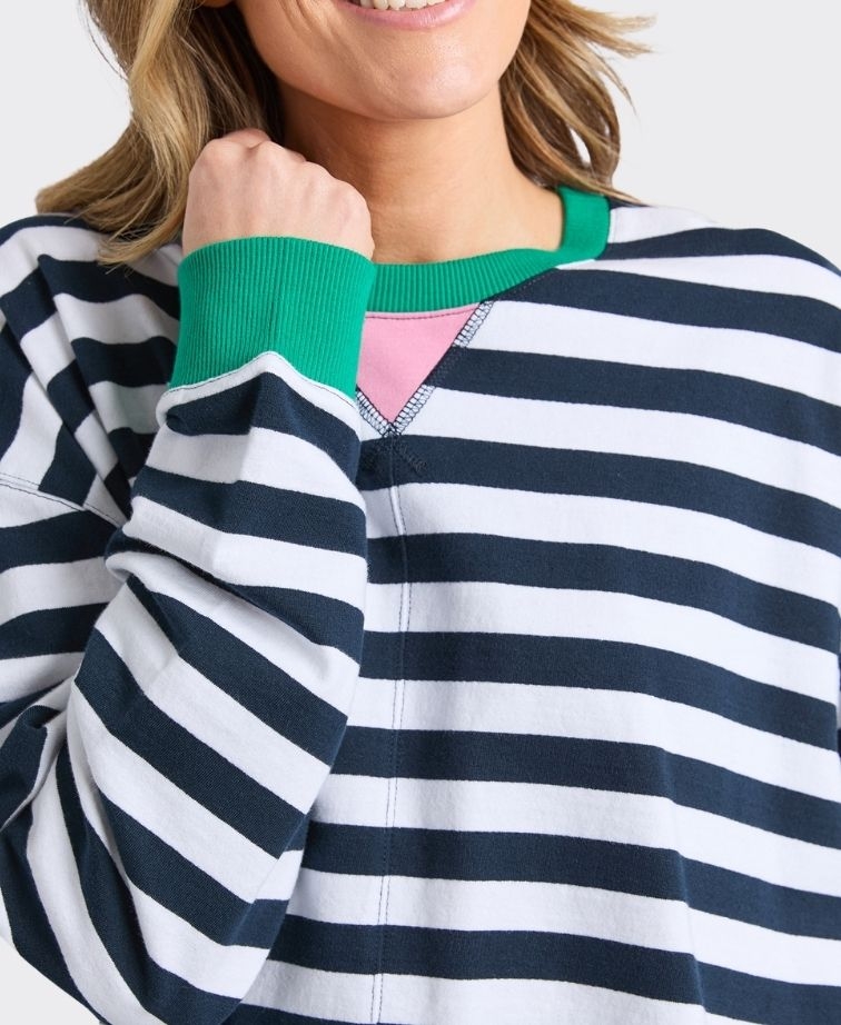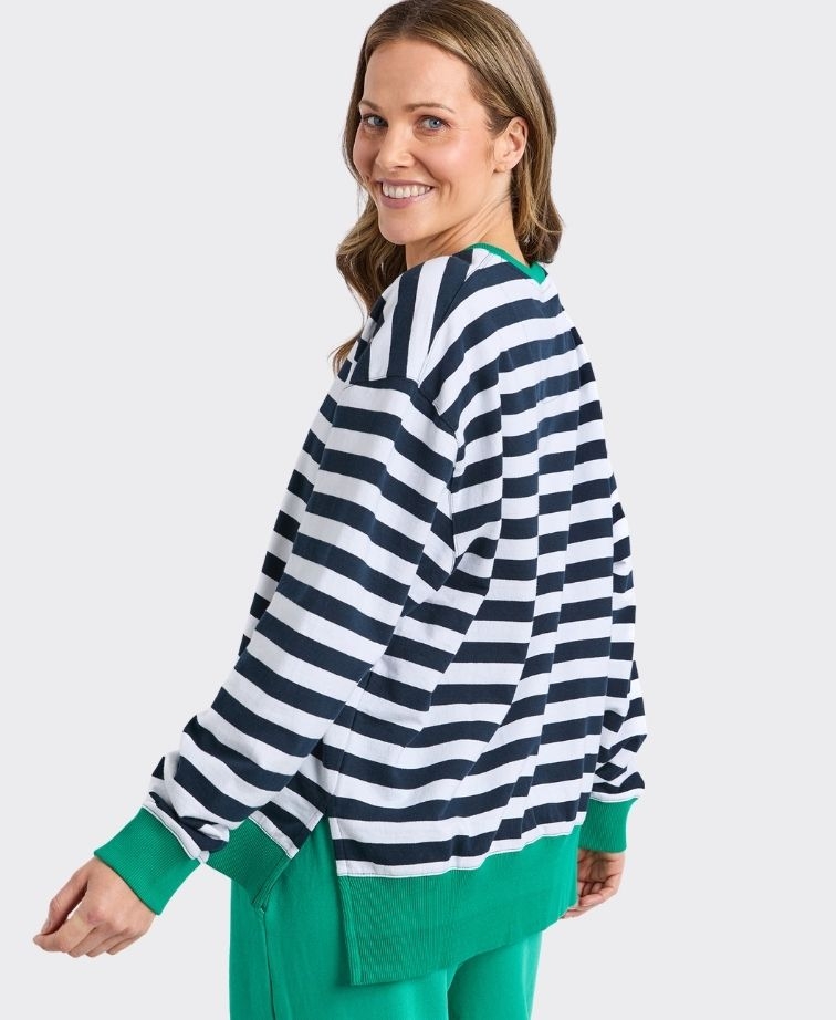 The Elm Maps Crew is a relaxed, oversized sweater crafted from 100% cotton for everyday comfort. Featuring yarn-dyed stripes and contrast rib detailing, this crew-neck layer is perfect for off-duty styling. Pair with relaxed denim, trackpants, or sneakers for an effortless casual look.Features:Yarn-dyed stripes for subtle textureContrast rib at neckline, cuffs, and hemOversized, relaxed fit for easy layeringComfortable 100% cottonModel Info: Size 10 model is 173cm tall