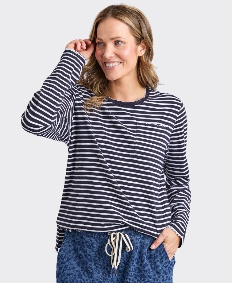 Elm Tee L/S Drea Stripe - Brands-Ladies : Yarntons | New Zealand’s Trusted Fashion Retailer Online - Elm AW26