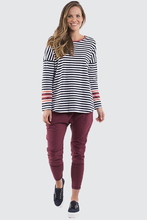 The perfect layering tee, we love our Locals Only Stripe Long Sleeve tee with a touch of colour added to such a classic navy/white stripe - easily with almost anything