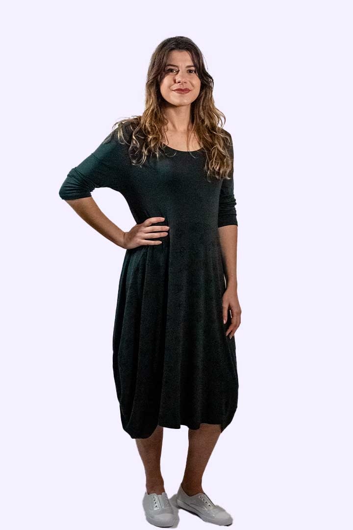 This is the volume hem dress Curved waist seam shaping creates a cocoon fit Scoop neck & long slim sleeves Body length from the shoulder to the hem is approx. 102cm (size Medium)