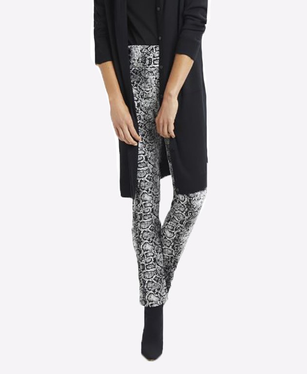 Slim pull on leg trousers with wide waistband, featuring false dome details to the front of the waistband. An easy pair of pants for all year round.