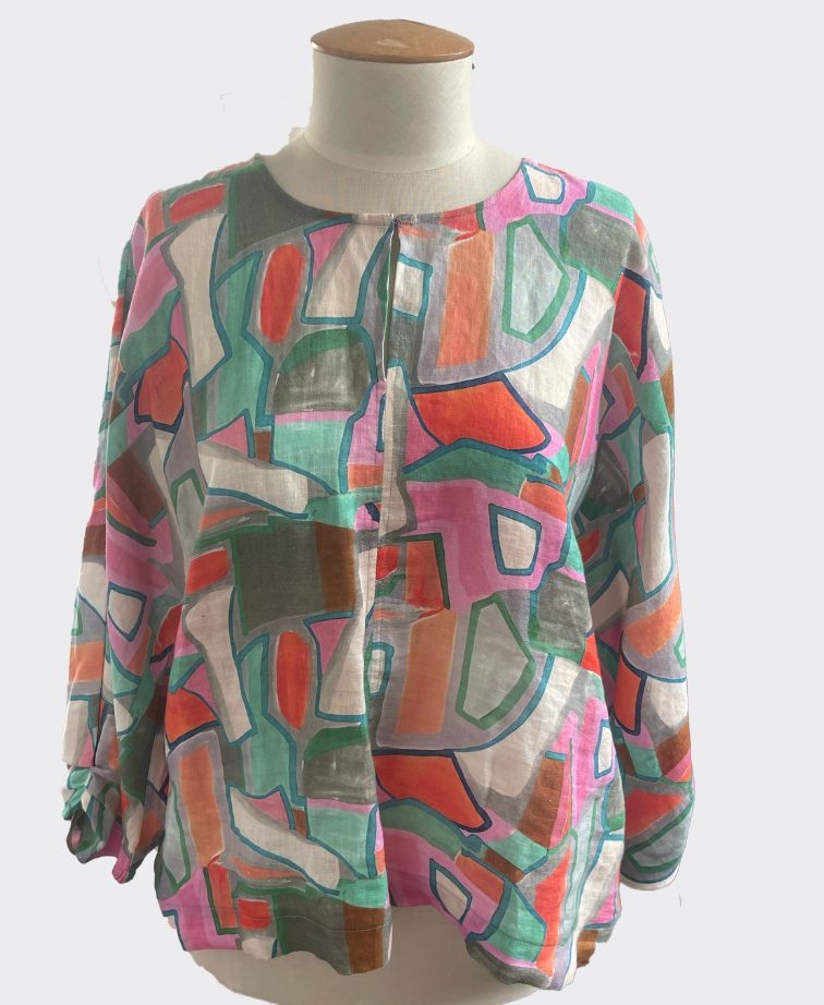 Foil Top Plot Twist Gathered Cuff Linen - Brands-Ladies : Yarntons | New Zealand’s Trusted Fashion Retailer Online - Foil SS25