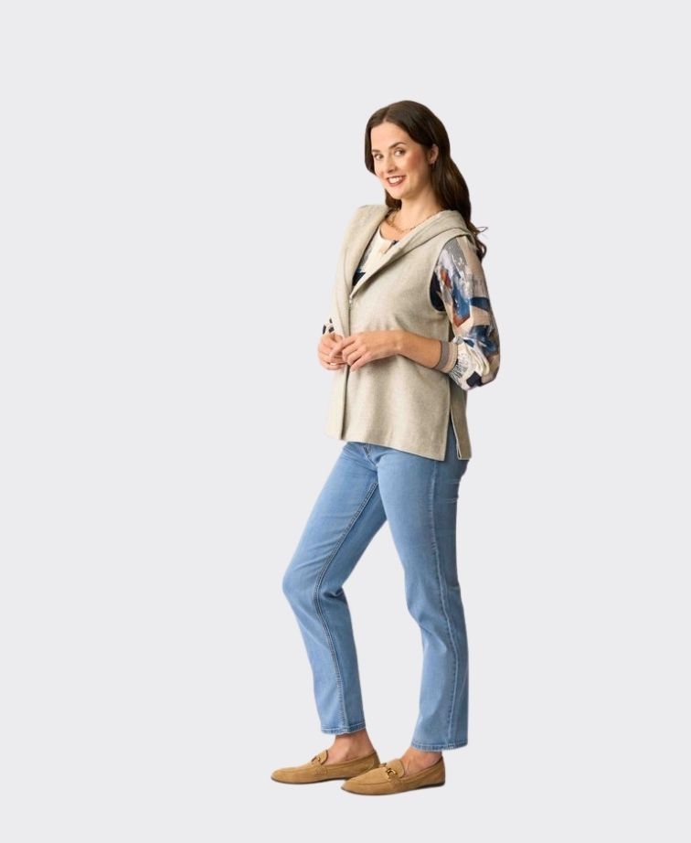The Wool The World Vest by Foil is the perfect throw-on layer for transitional weather. Crafted from a soft boiled wool blend, this vest features a hood and a zip-up front for practicality, while maintaining a casual yet sophisticated silhouette. Lightweight and versatile, it can be layered over both casual and polished outfits. With an approximate 63cm body length from shoulder seam to front hem (size 10), it offers a flattering and effortless fit.