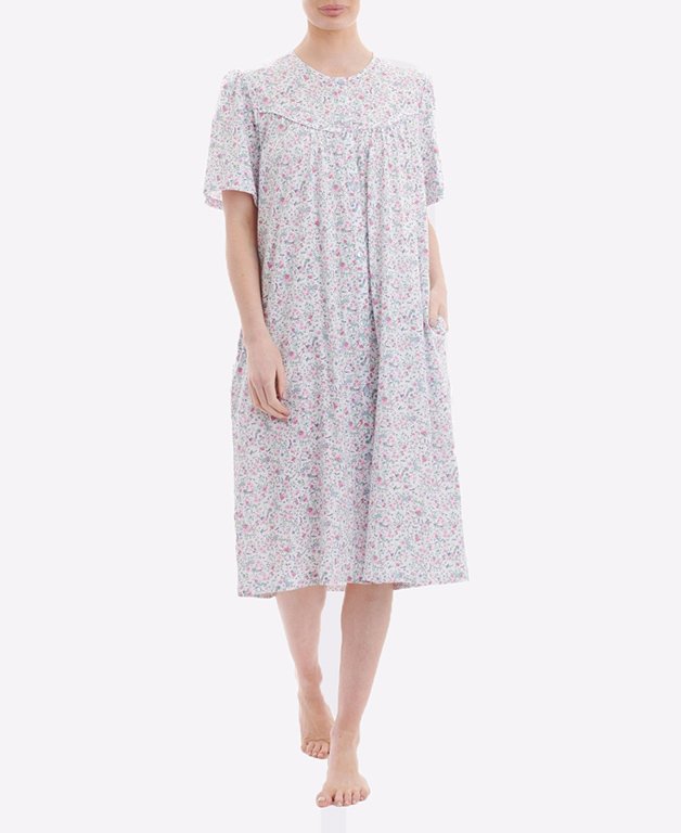 This brunch style nightie comes in a dainty blue/pink print in a 100% natural cotton knit.