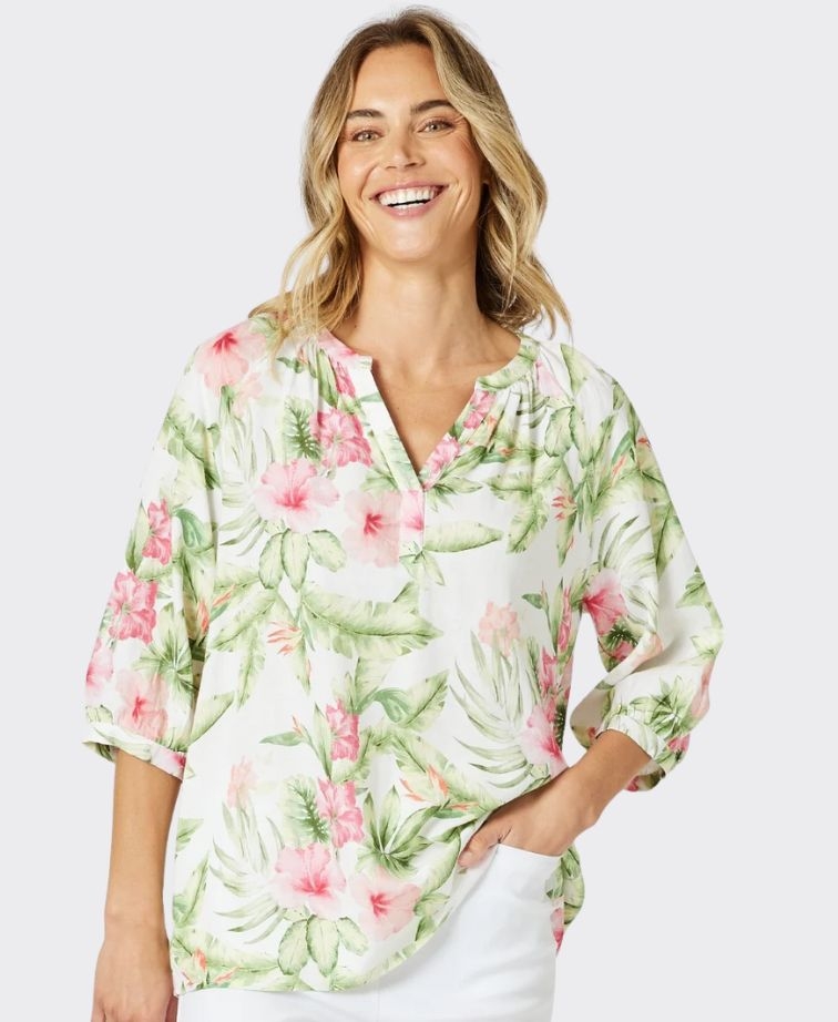 Bring a touch of tropical charm to your everyday style with the Caledonia Floral Print Top.