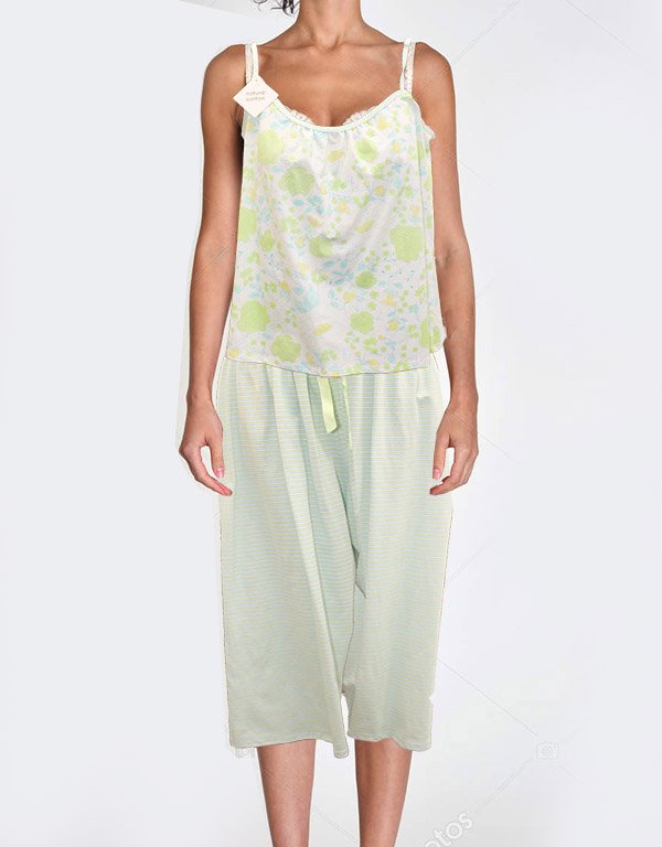 100% Cotton. Camisole top with striped pajama bottoms