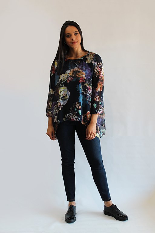 Memo Blouse L/S Chiffon Overlay Print - Women's Shirts | Yarntons | Free NZ shipping on orders over $150 - Memo AW19