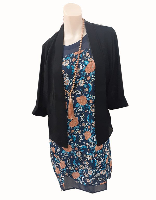 This Memo jacket made of Chiffon has an open front which give it elegance and flair.