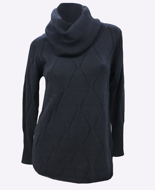 A Cowl neck jumper, in this A-line shape with fitted long sleeves, featuring this diamond print on the body. A comfy new jumper to keep you warm this season!