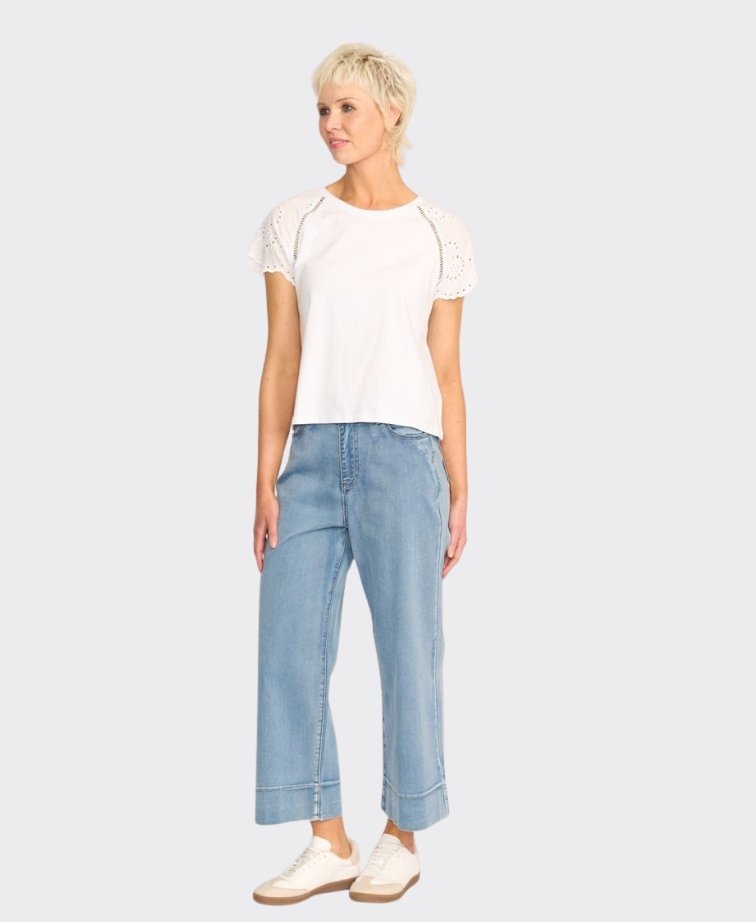 Memo T-Shirt Broderie Sleeve - Brands-Ladies : Yarntons | New Zealand’s Trusted Fashion Retailer Online - Memo SS25