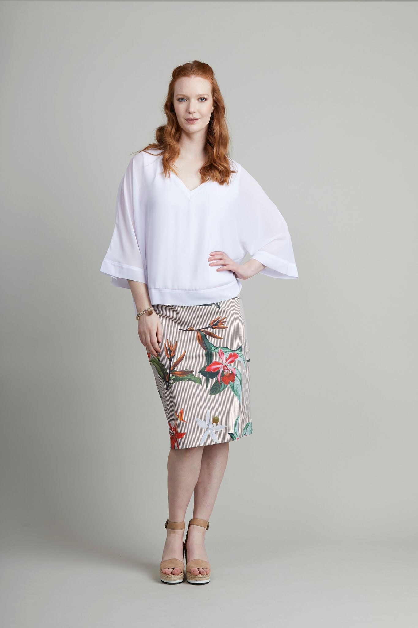 White v neck chiffon tank with batwing overlay. Easyfit style and flattering.