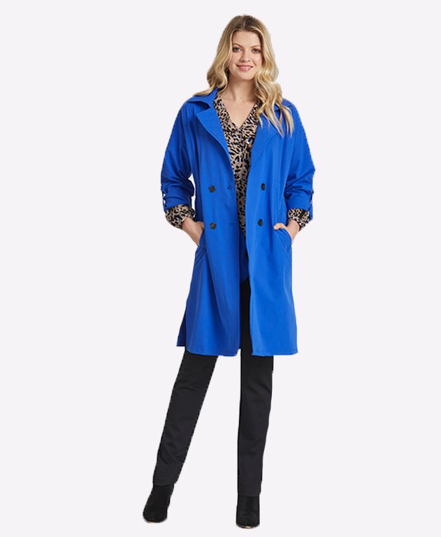 The Harper coat is a double breasted style with tab sleeves, side splits, angle inset pockets, drawstring back and comes in a shower proof fabric.