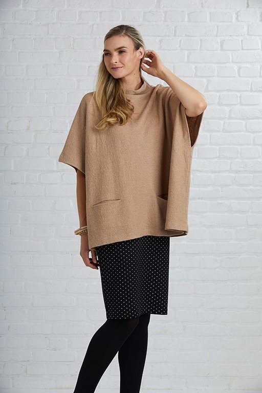Boiled wool poncho is a fab piece Layer up for those colder days High neck adds to the warmth factor Pockets to the front add a useful feature