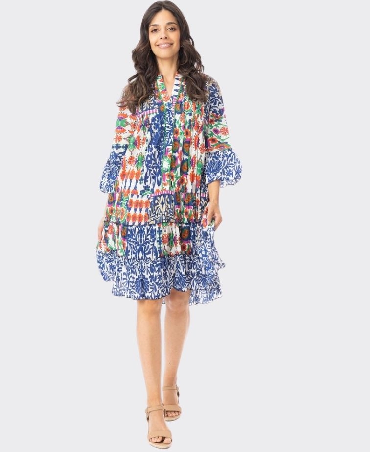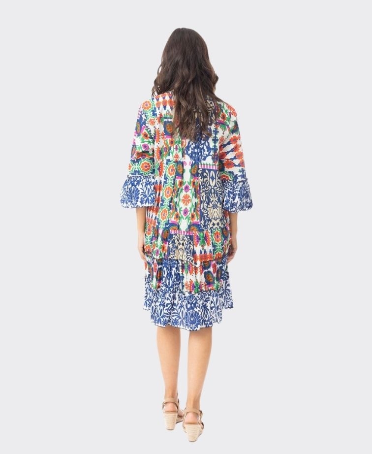 Capture the essence of summer with our Buzios Layers Frill Sleeve Dress! Featuring a vibrant mix of colour and print, this dress radiates summer vibes. The A-line knee-length design with playful ruffles and relaxed three-quarter sleeves ensures both comfort and style, making it your go-to outfit for summer days out.