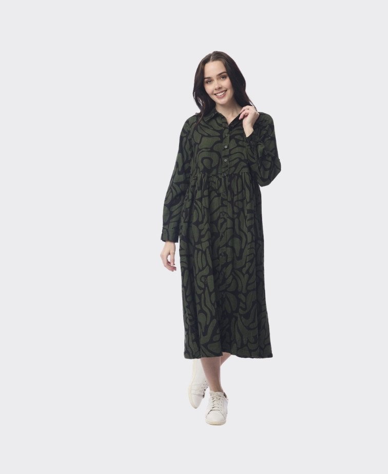 Orientique Dress Midi Collar Button Thru Congo - Brands-Ladies : Yarntons | New Zealand’s Trusted Fashion Retailer Online - Orientique AW26