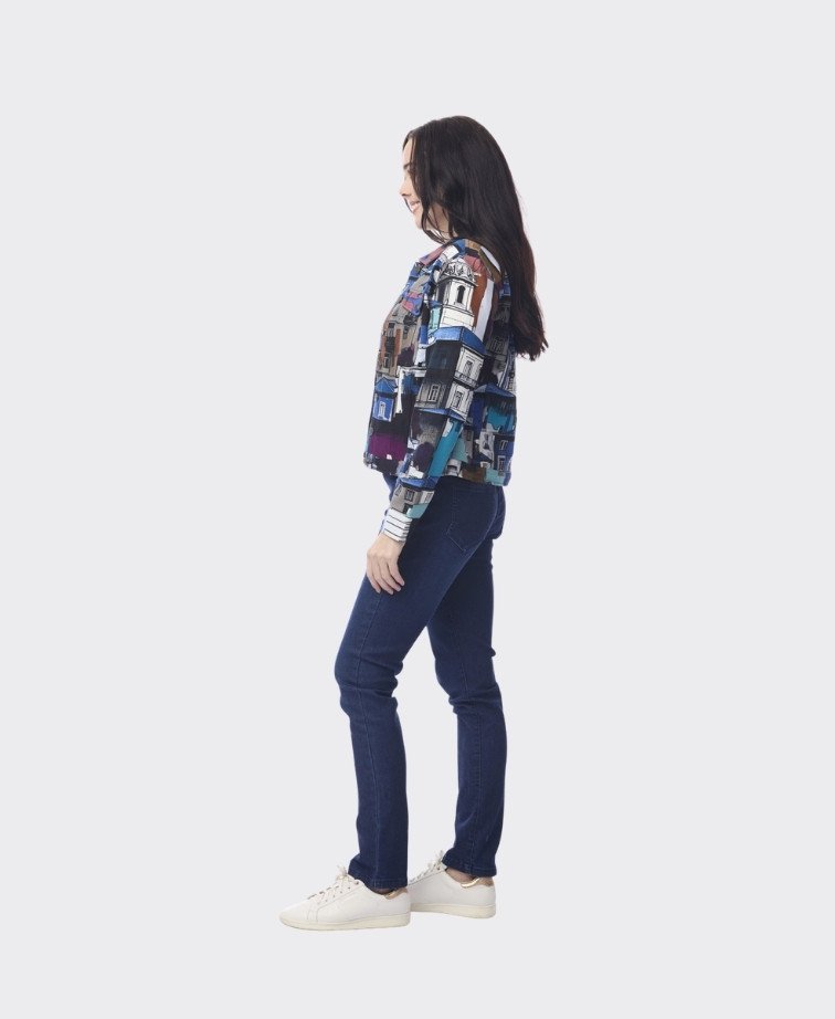 Designed with a classic collar and button-through front, this jacket features a slightly cropped length that creates a flattering, feminine silhouette. Finished with vibrant prints and practical pocket detailing, it's the perfect statement layer to elevate simple outfits.
