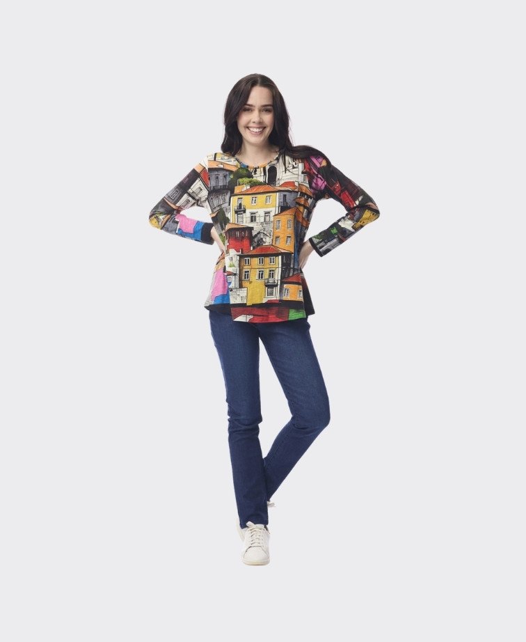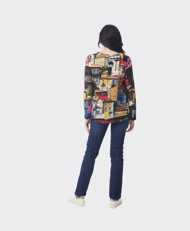 Designed with a classic crew neckline and long sleeves, this versatile top features fun prints that add personality to your casual wardrobe. With its comfortable fit and hip-length cut, it pairs effortlessly with jeans, skirts, or relaxed trousers for a stylish yet laid-back look.