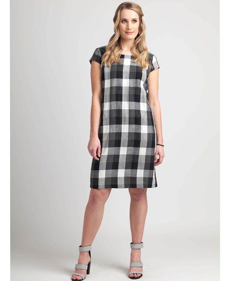 Dress with rib insert panels at back waist