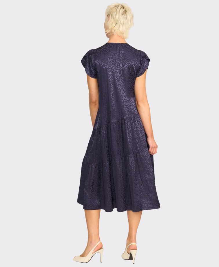 The Preen Asymmetric Tiered Dress is all about easy elegance. With a soft V-neckline, subtly capped sleeves, and a tiered skirt that floats as you move, it’s designed for comfort without compromising on style. That tonal leopard pattern gives it just the right amount of interest—dress it up or down all season.