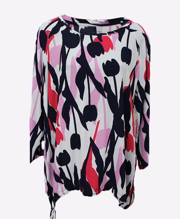 This top with the fun Tulips print features a drawcord up down hem which you can wear this versatile top loose or pull the drawcord in to give the top more shape.