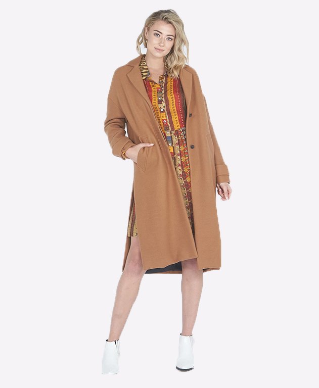 This Privilege Coat in the shade Autumn is a gorgeous and quality coat with a soft touch fabric. An ideal winter coat to throw on over absolutely anything. Featuring a split at the sides for additional style, it's fully lined, includes pockets and button at the front to secure the heat