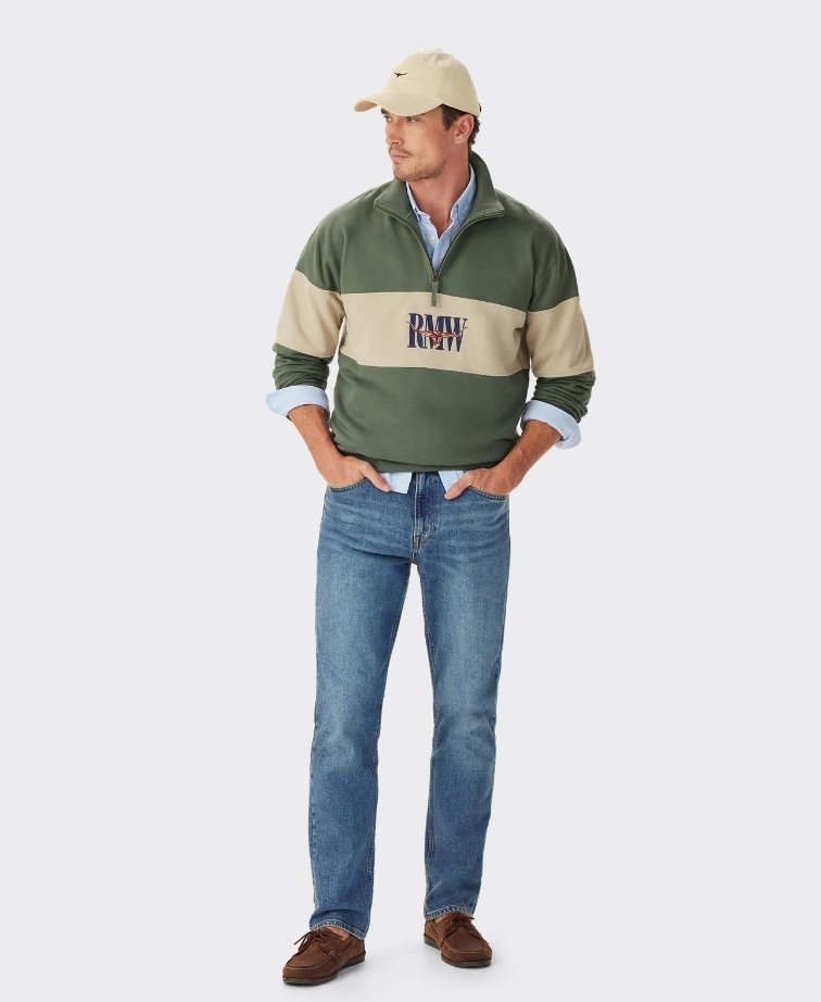 A bestselling heritage-inspired style crafted from premium Australian cotton, this quarter-zip sweat delivers everyday comfort with a refined edge. Designed in a relaxed fit, it features contrast panelling, ribbed cuffs and hem, and an embroidered Heritage logo on the chest for a signature finish. Ideal for layering, its a versatile staple for casual, off-duty wear.
