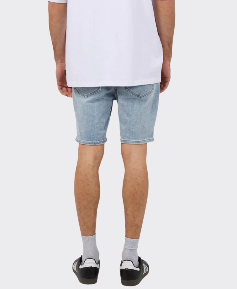 The Shadow A2 Short in denim features a mid-rise, relaxed fit designed for comfort. With five practical pockets, these shorts offer ample storage for your essentials, making them ideal for everyday wear.