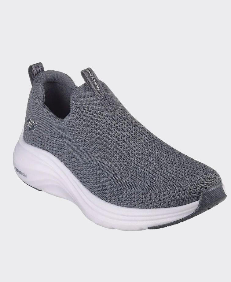 Experience total comfort and sleek lightweight style wearing Skechers Vapor Foam™ - True Classic. This laceless design features a Stretch Fit® engineered knit upper with a cushioned Skechers Air-Cooled Memory Foam® insole, plus a super lightweight Vapor Foam™ midsole.