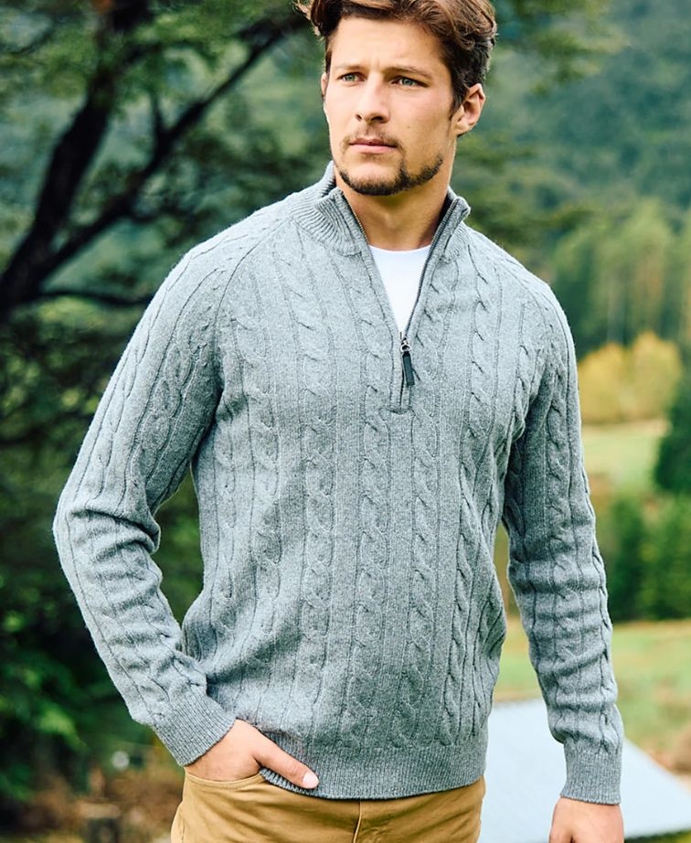 The Men's Doncaster V2 Zip Cable Knit in Grey Marle delivers the same durable warmth in a lighter, easy-to-style colourway. With 65% wool for natural insulation and nylon for added strength, it's built to handle repeat wear while keeping its structure. The quarter zip makes it practical for changing temperatures, and the cable knit texture gives it that classic winter feel without trying too hard.