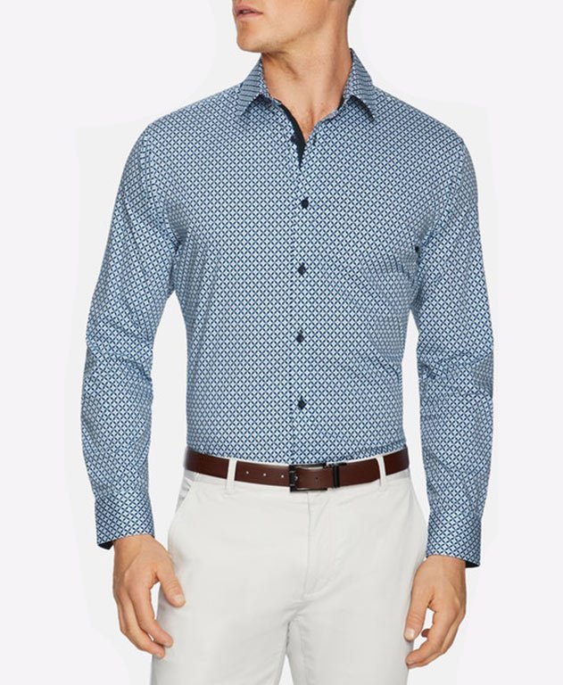 Refresh your new season wardrobe with the Clifton shirt. Featuring a modern geo print, this slim fit button up shirt incorporates on-trend navy tones.