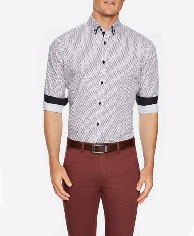 Add a fresh look to your new season wardrobe with the Finch Geo Print Shirt. This shirt features a modern geometric design, button down collar and contrast trim detailing. Complete your look by styling this pritned shirt with a pair of Tarocash new season chinos and smart leather lace ups.