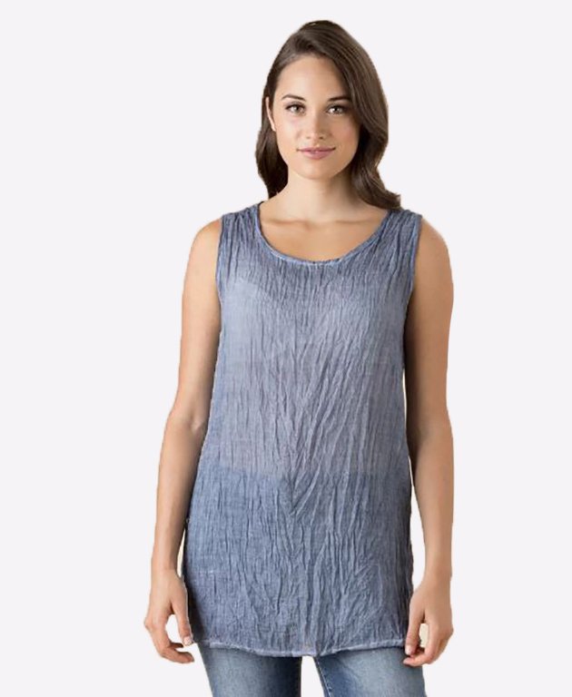 This cami by Threadz is your on-trend layering piece, you'll wonder how you ever lived without it! Ina fine cotton blend, this sleeveless top features an over-dyed colour and a crushed crinkle appearance. Wear under your favourite knits and tops for the latest in casual style.