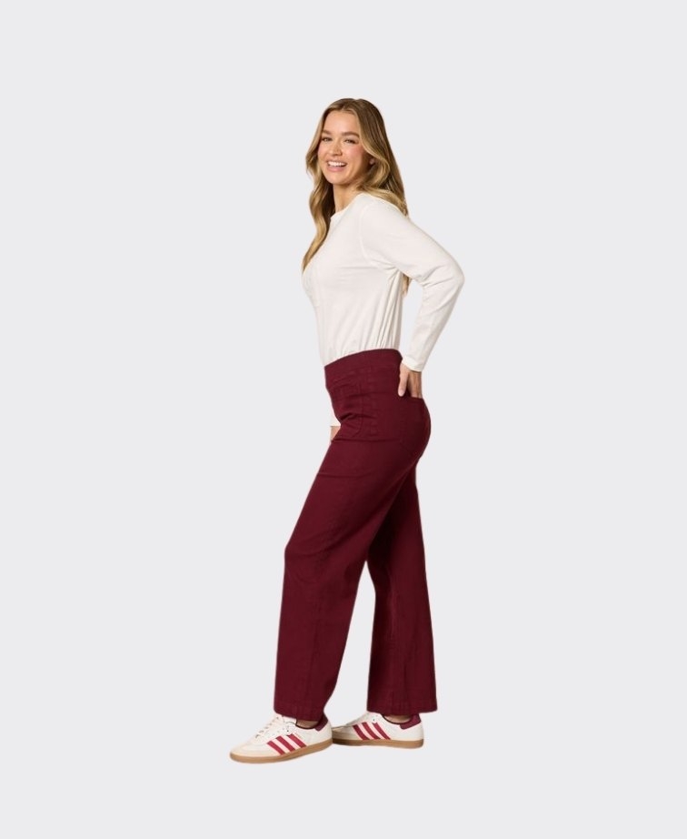 Crafted from stretch denim, these jeans offer structure while allowing easy movement throughout the day. The wide leg silhouette creates a modern, relaxed look, while front pockets add practical everyday style.