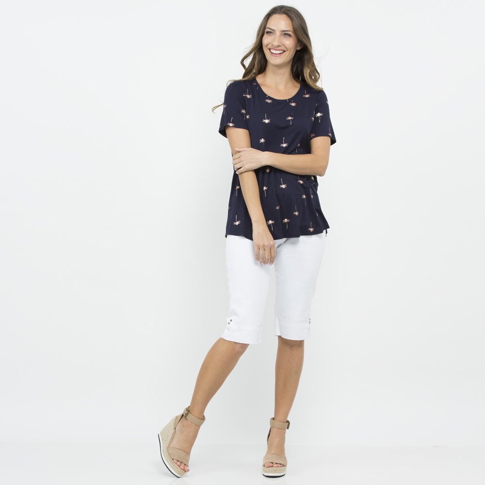 Threadz Tee Swing Palm Print - Women's Tops | Yarntons | Free NZ shipping on orders over $150 - Threadz E