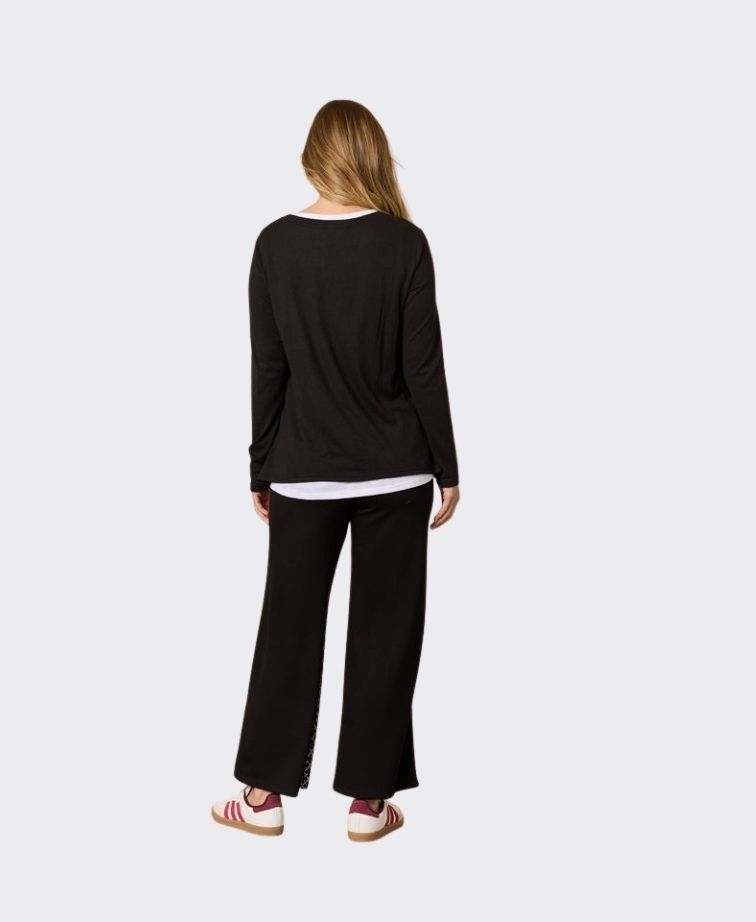 The contrast detailing gives the appearance of two perfectly coordinated garments, delivering instant polish with zero effort. Side splits add movement and a flattering drape, allowing the top to fall beautifully over the body while layering seamlessly over your favourite pants or casual bottoms.