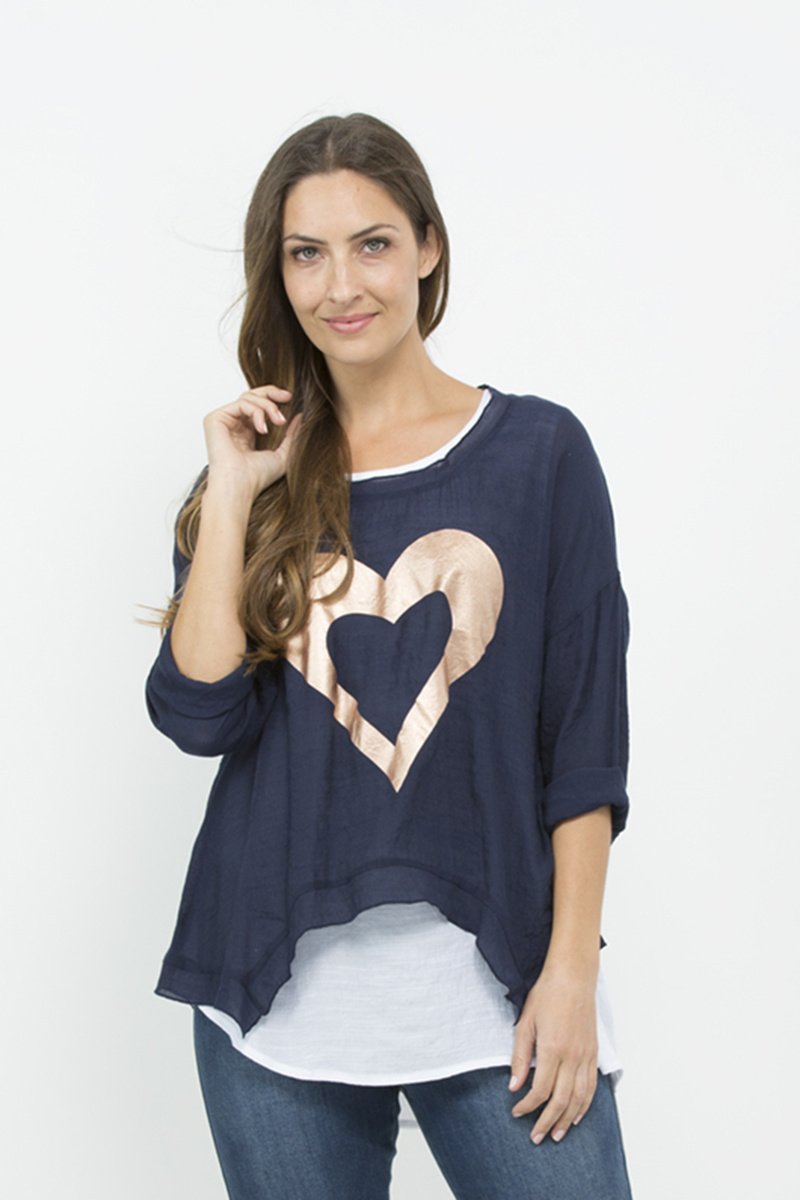 Threadz Top Heart Print With Cami - Women's Tops | Yarntons | Free NZ shipping on orders over $150 - Threadz E