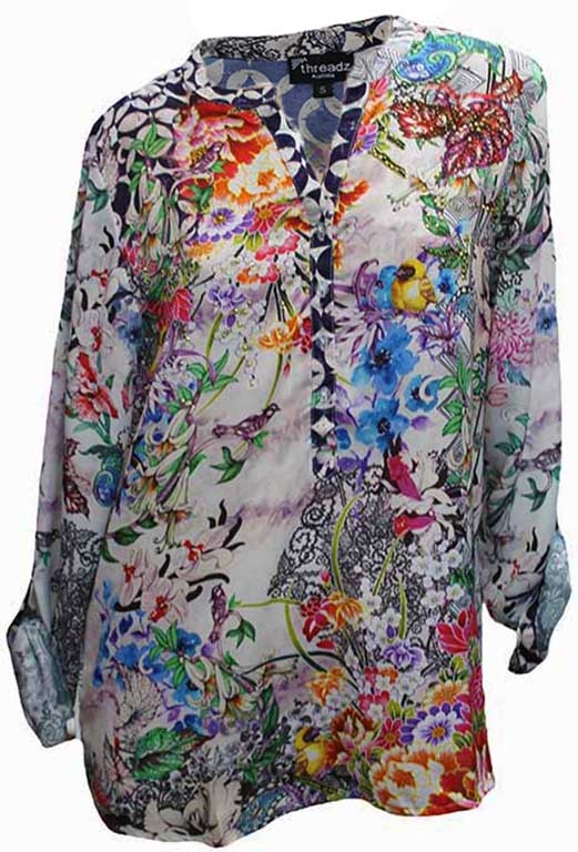 Threadz Top Print Gold Studz - Women's Tops | Yarntons | Free NZ shipping on orders over $150 - Threadz E