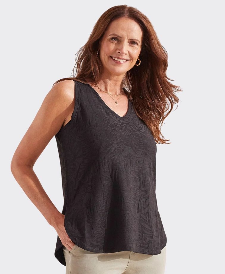 Tribal Tank V-Neck Textured Side Slits - Brands-Ladies : Yarntons | New Zealand’s Trusted Fashion Retailer Online - Tribal SS25