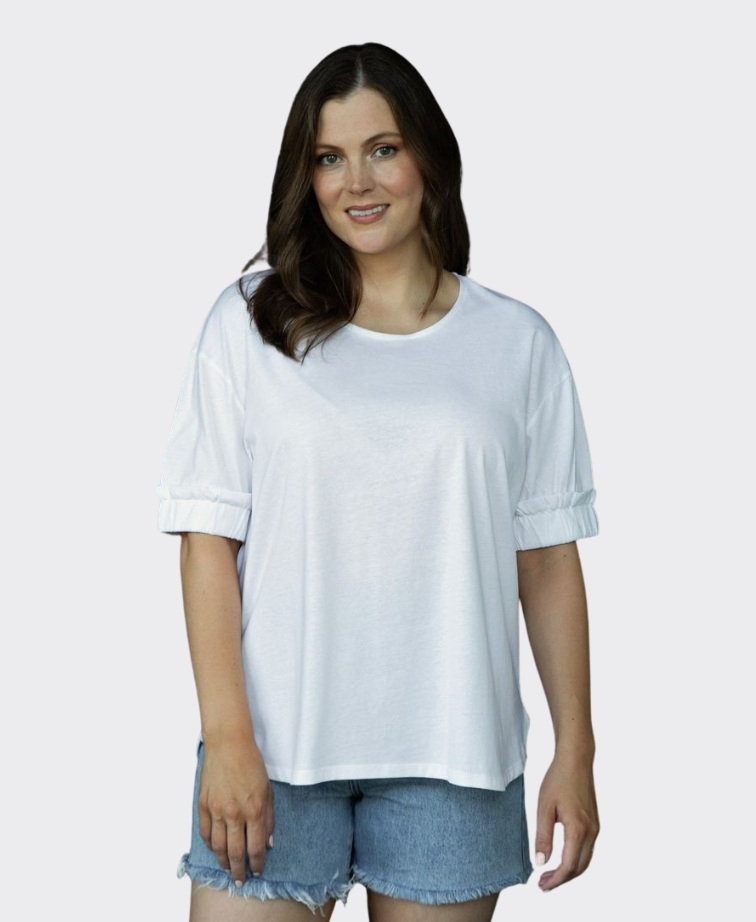 White On Black Tee Elasticated Sleeve - Brands-Ladies : Yarntons | New Zealand’s Trusted Fashion Retailer Online - White On Black SS25