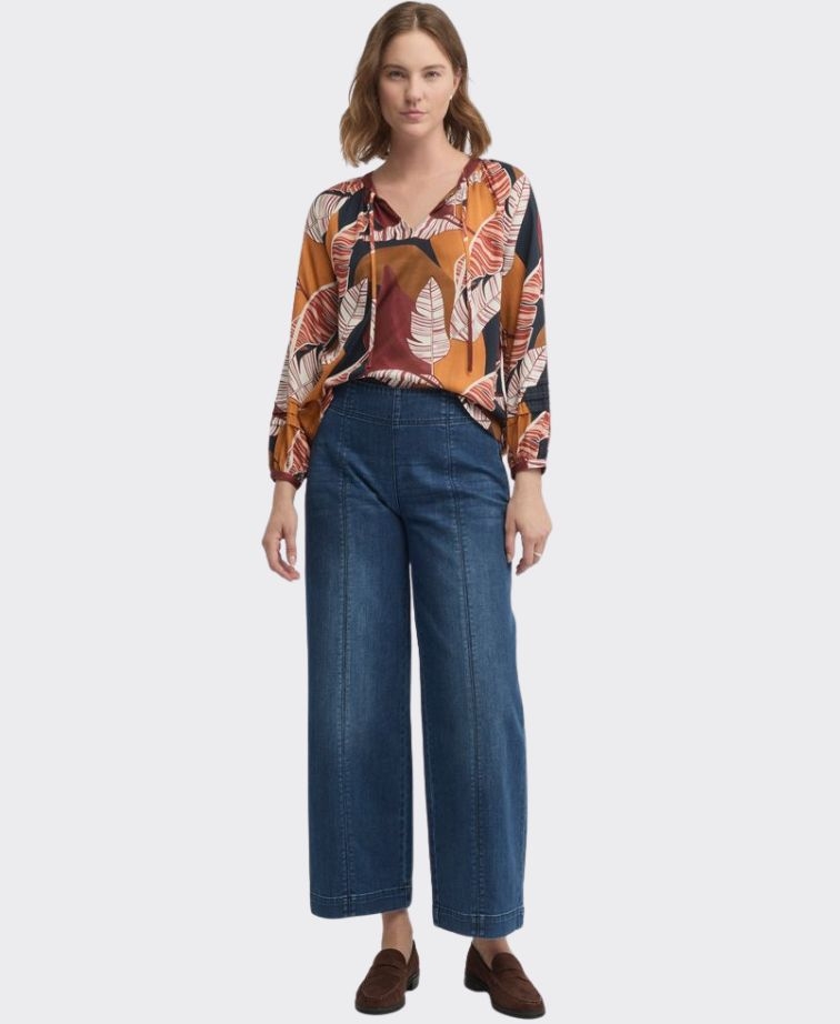 Yarra Trail Blouse Feather Stone Print - Brands-Ladies : Yarntons | New Zealand’s Trusted Fashion Retailer Online - Yarra Trail AW26